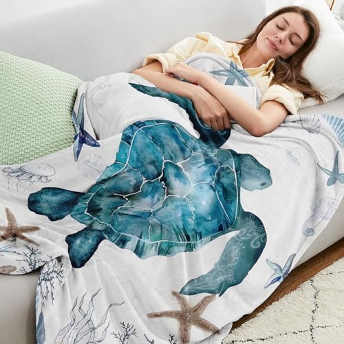 SUPER SOFT & LIGHTWEIGH:made of 300 GSM high-quality plush microfiber fabric,this sea turtle flannel fleece throw blanket offers a luxuriously soft feel. Its lightweight design ensures breathable comfort, making it perfect for year-round use.