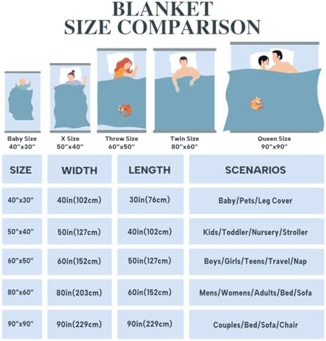 Size: 30″x40″; 40″x50″; 50″x60″; 60″x80″; 90″x90″ for kids, toddler, teens, adults, pet blanket; wrap yourself with this blanket to enjoy snug warmth for all seasons, suit for sofa, couch, bed, car and office
