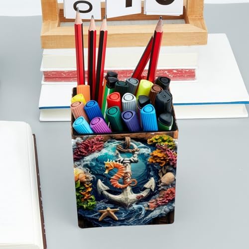 Leather Pen Holder for Desk, Nautical